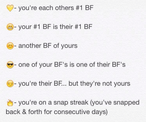 Snapchat uses emojis to determine who is your 'friend' and 'why'. Each emoji attached to a friends name, is actual a ranking and defines in which way that person is your friend (which depends on how you interact with them).
