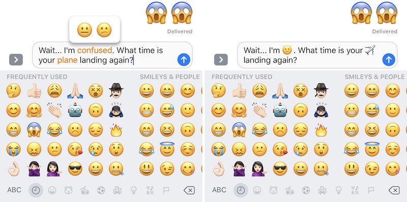 While typing a message in iMessage, certain words appear bold and in a yellowish tone. The words that appear formatted are accompanied by suggested emoji's that can replace the text when you tap on it - making messages more fun.