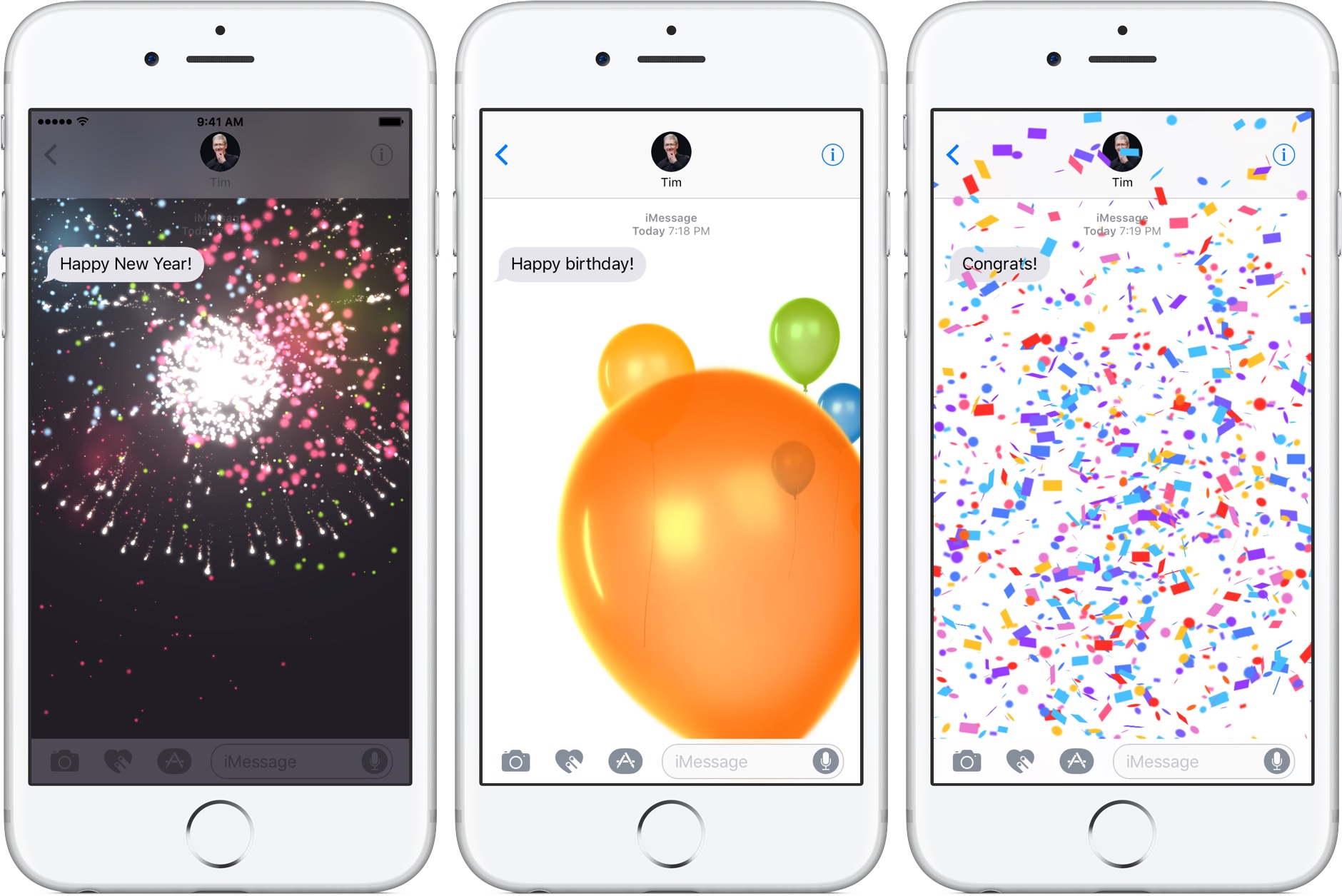 If you text happy birthday, then it will be followed up with balloons which you can select to be a small bubble, or take over the screen when the receiver opens the message. As well, if you text congratulations, confetti will appear.