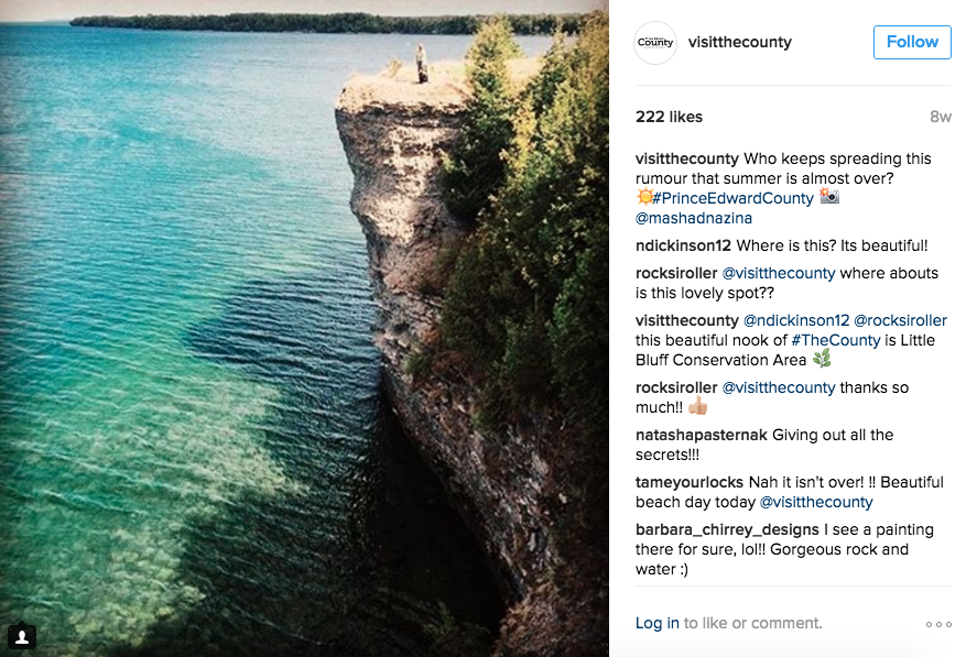 The Prince Edward County Instagram might be one of the best municipal accounts that I've come across in a long while. With beautiful content, topical posting, and a well crafted editorial calendar, the County's post create the type of atmosphere that make you want to jump in the car and head on over. Moreover, they use the channel to promote local businesses and secret spots, generating chatter between citizens and visitors alike.