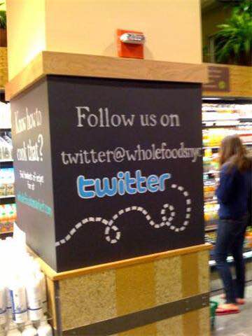 At the entrance of the front door, there is a sign that tells people how to find them on Twitter and Facebook. This is a simple and smart move that every physical business should utilize to alert their customers of their social media presence from the starting point of their interaction.