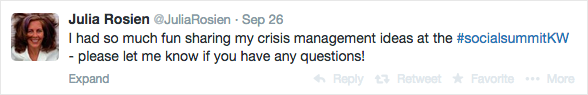 Julia advised on how to turn a social media "crisis" around, to create an opportunity for a valuable and positive engagement with your brand.