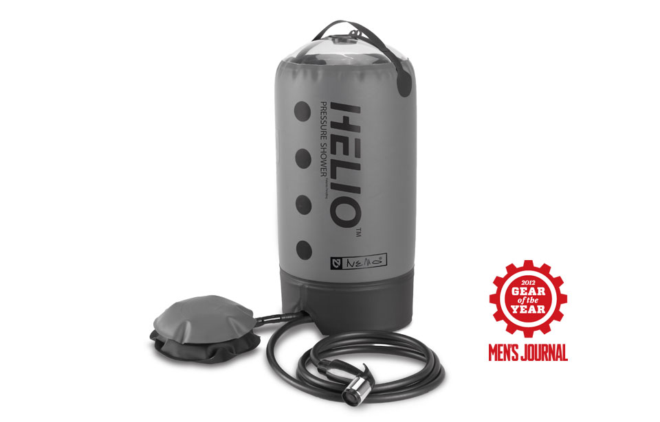 Equipped with a 7 foot hose and a tank that holds enough water for a 7 minute shower, this portable tank is lightweight and simple to use. This high pressure shower operates off of a foot pump, and has multi functions - use to take a shower, give your pet a shower, rinse off your clothing and / or dishes. The Helio pressure shower is priced at $100 and, if left in the sun, the water becomes warm and transforms into a 'hot' shower.
