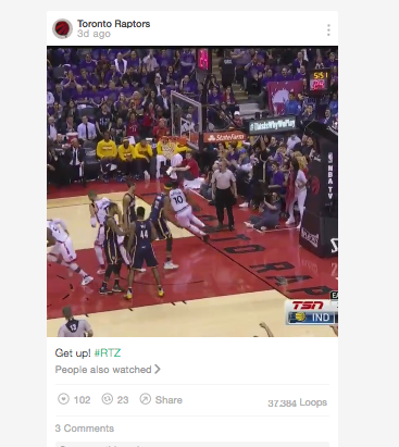 The Toronto Raptor's have great branding across all social outlets. The brand has a massive Vine following and posts clips daily. The fans love to view the loops of highlights from a game, their fan base as well as their athletes.